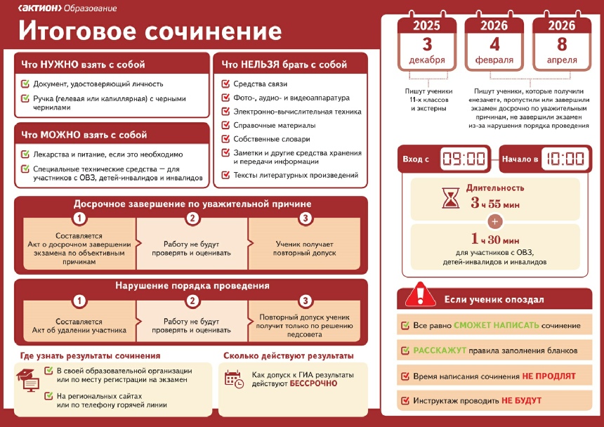 Сроки проведения итогового собеседования в 2025 – 2026 уч.г.