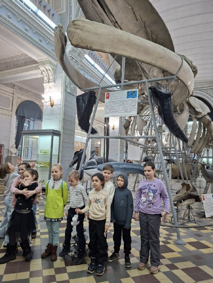Участники кружка «Занимательная биология» посетили Зоологический музей РАНН. В ходе экскурсии ребята узнали много нового о китообразных и увидели один из самых больших в России натуральных скелетов синего кита.