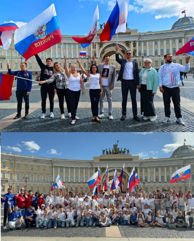 Сегодня учителя нашей школы совместно с администрацией Дворового округа приняли участие во флешмобе на Дворцовой площади, посвящённому Дню Российского флага