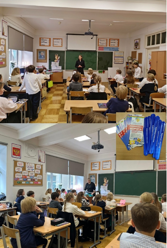 Сегодня в школе для учащихся начальных классов состоялось совместное мероприятие Госавтоинспекция Центрального района г. СПб и Муниципального образования МО Дворцовый окру, направленное на профилактику детского травматизма и обучение правилам безопасного поведения на дороге.