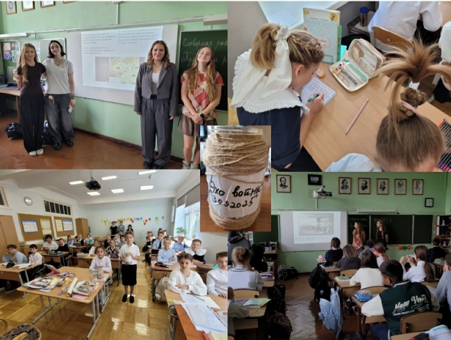 Сегодня учащиеся 4а и 8а класса совместно с активистами школы приняли участие во всероссийской акции "Эхо Войны"!