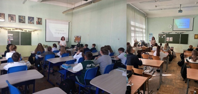 Педагог-психолог ППМСцентра Развитие Алексеева В.В. проинформировала учащихся 6-х классов о крупных террористических актах, произошедших в мире и в России, сделав акцент на трагедии в Беслане, унесшей жизни сотен детей и взрослых.