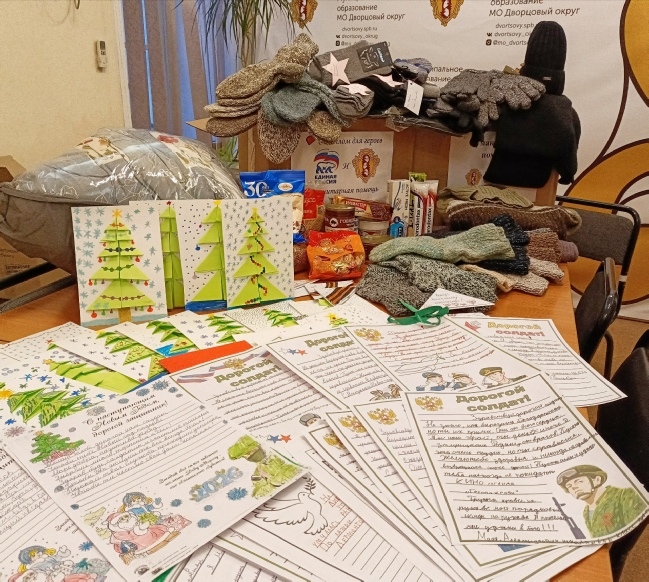 Особое значение имеет тот факт, что помощь собиралась жителями округа с душой и желанием поддержать наших героев. А ученики ГБОУ СОШ №636 и Российской гимназии при Государственном Русском музее подготовили поздравительные открытки с добрыми пожеланиями. Сердечно благодарим всех участников акции «Тепло для героев»
