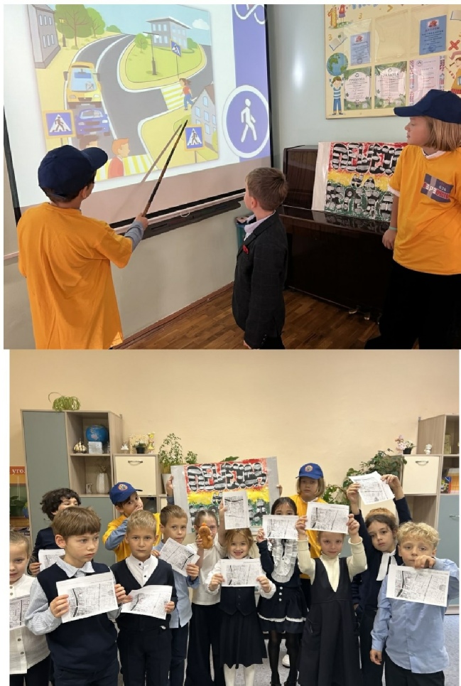 Ученики 5 а класса  участники школьного отряда юных инспекторов дорожного движения, провели занятие для первоклассников «Безопасный маршрут» в рамках недели дорожной безопасности.